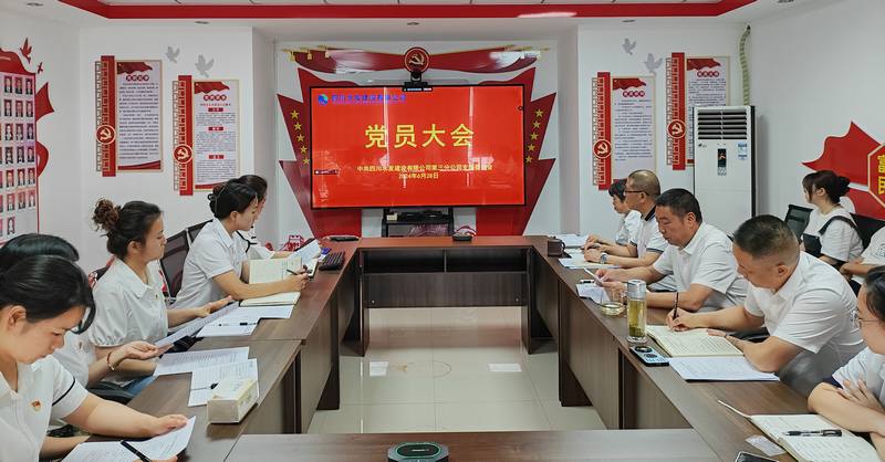 6月28日,三分公司在水利大廈7樓黨員活動室召開黨員大會,集中開展黨紀學習教育,黨支部書記、經理毛偉主持。