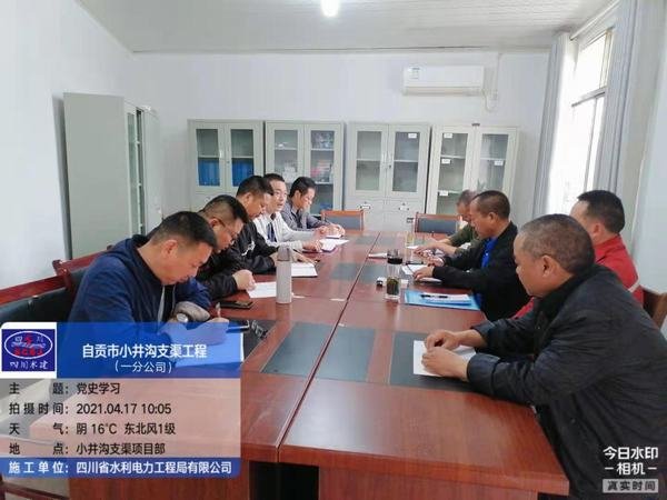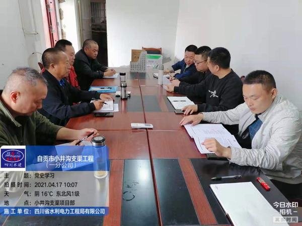一分公司黨支部在自貢小井溝支渠項目部召開黨史學習教育會(2021.04.17)