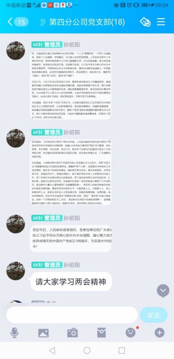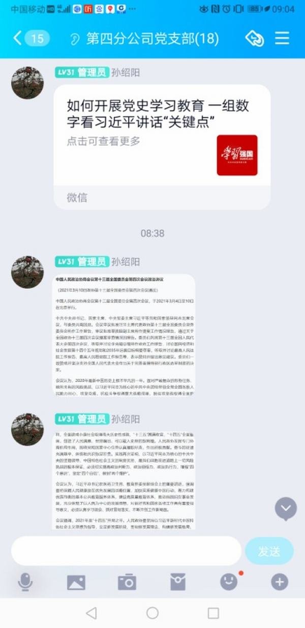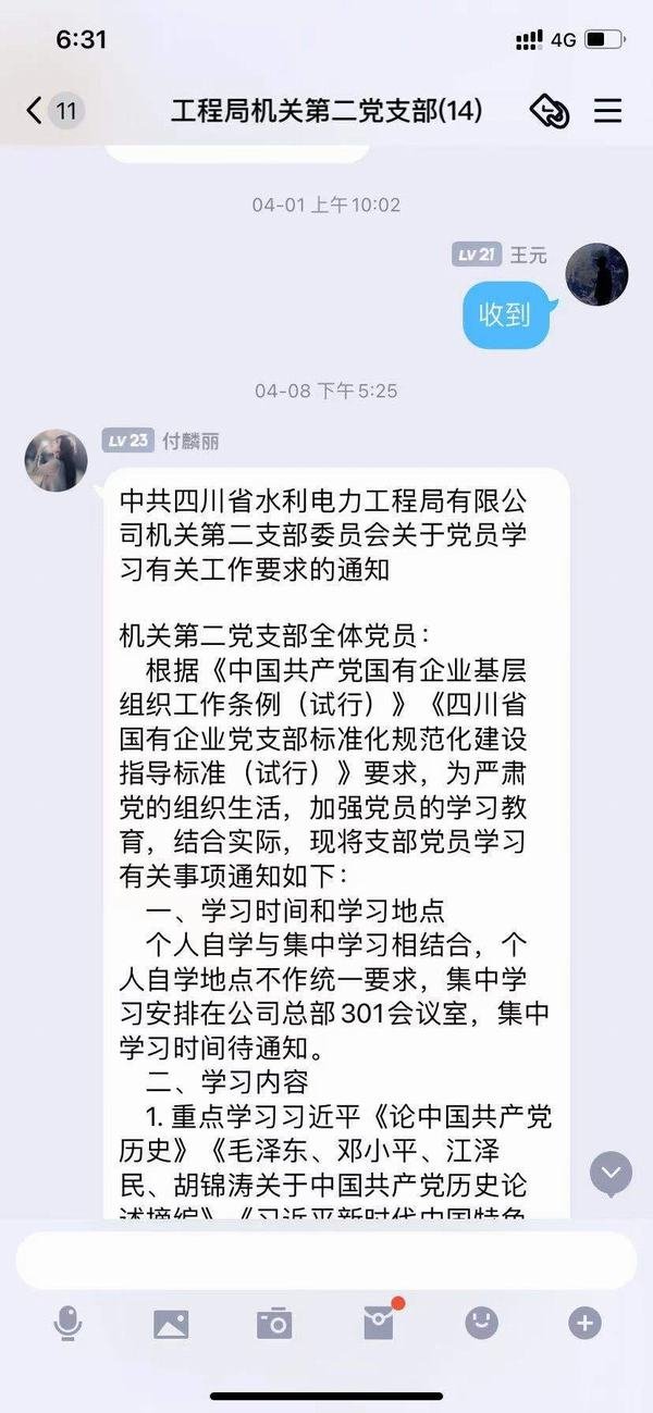 機關第二黨支部利用支部QQ群對黨史學習教育作出要求(2021.04.08)