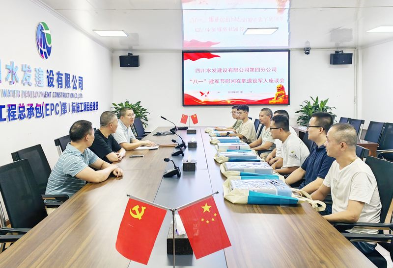 為慶祝中國人民解放軍成立96周年,進一步弘揚擁軍愛軍的優(yōu)良傳統(tǒng),持續(xù)做好雙擁工作,2023年8月1日,四分公司在亭子口項目部召開慰問在職退役軍人座談會。四分公司副經理、亭子口項目一支部副書記張亮亮,工會主席袁小峰,分公司部分在職退役軍人及青年職工代表參加會議。