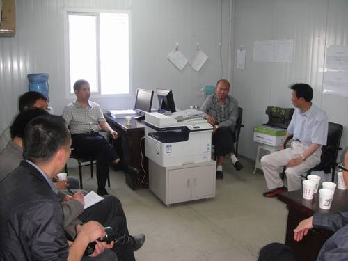 在項目部會議室,鄔清富一行與七處和項目部班子進行了座談。鄔清富首先預(yù)祝大家“五一”節(jié)快樂,對班子和職工的辛勤付出表示感謝。他十分關(guān)切節(jié)日期間職工的生活,囑咐項目部務(wù)必抓好食堂、飲用水等后勤保障工作。鄔清富強調(diào),石亭江河道整治工程是救災(zāi)工程、民生工程,意義重大,影響深遠,務(wù)必以高度的責(zé)任感、使命感、緊迫感抓好工程施工。他對項目部提出四點要求,一是抓好工程質(zhì)量,做到內(nèi)優(yōu)外美。二是抓好安全生產(chǎn),防患于未然。三是抓好工程資料整理,滿足驗收和審計要求。四是抓好工程結(jié)算和資金回籠。鄒世界代表七處和項目部感謝工程局、局黨委的關(guān)心支持,并表示將抓緊工程施工,確保5月底前完工,實現(xiàn)提前合同工期一個月的目標(biāo)。
