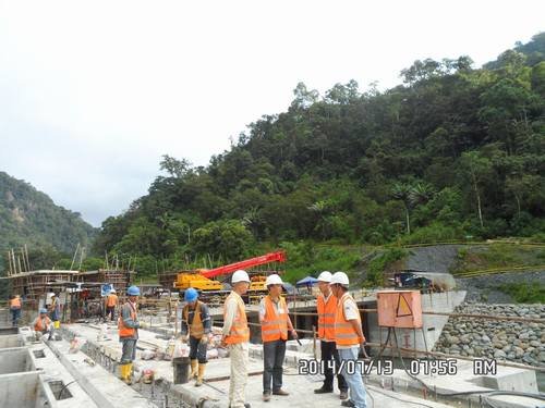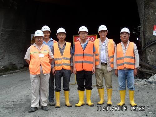7月11日,汪輝德在項(xiàng)目部經(jīng)理高代勝、副經(jīng)理李靜、楊聰明及項(xiàng)目部總工程師袁路等的陪同下,先后查看了厄瓜多爾TP項(xiàng)目部取水口閘壩、隧洞進(jìn)出口、地下廠房、、尾調(diào)室、泄水洞等施工現(xiàn)場,詳細(xì)了解了工程的進(jìn)度、質(zhì)量、安全、設(shè)計(jì)和文明施工等工作,詢問了施工一部和中水對外公司、監(jiān)理公司之間關(guān)系協(xié)調(diào)等情況,對目前工程的進(jìn)展給予充分的肯定,同時(shí)也指出了工地現(xiàn)場的一些不足之處。