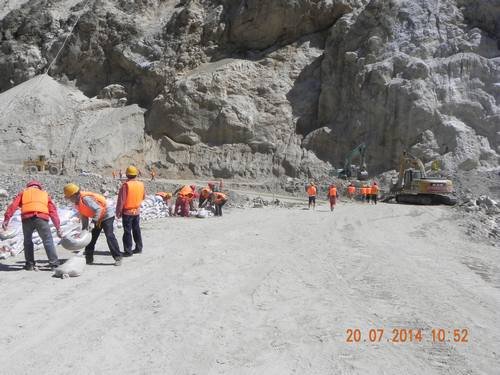7月20號上午10時40分,項目部在上游圍堰成功組織了一次防汛防地質災害演練,參加演練人員70人。此次演練持續了一個小時,九龍峽公司、引大監理等單位領導應邀到現場指導并觀摩了本次演練全過程。