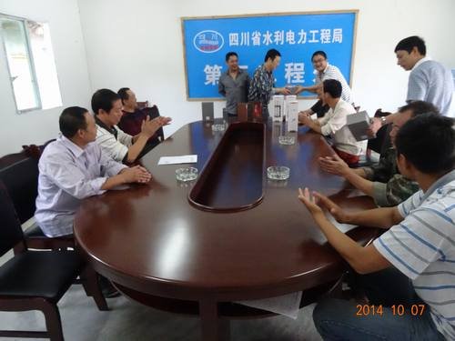 后溝水庫(kù)項(xiàng)目部經(jīng)理李軍為獲獎(jiǎng)職工頒發(fā)比賽紀(jì)念品