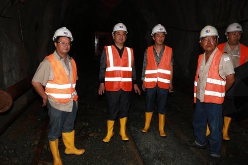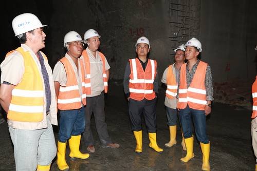 經過兩天17000公里的長途飛行,在抵達厄瓜多爾TP項目部后,鄔局長不顧旅途勞累和時差影響,在項目部經理高代勝、副經理楊聰明、李靜、王安明等項目相關人員陪同下,先后到取水口閘壩樞紐、壓力隧洞進出口、地下廠房、尾調室、泄水洞等施工現場察看,詳細了解施工技術方案、設備、材料、人員,特別是厄瓜多爾當地勞務人員等具體情況,并不時提出指導意見。