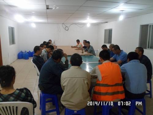 2014年11月10日,根據(jù)總體進度計劃各個節(jié)點工期要求,局厄瓜多爾TP項目部召開了“保安全、抓工期、促生產(chǎn)”動員大會。項目部經(jīng)理高代勝、主管經(jīng)營副經(jīng)理楊聰明、主管技術(shù)副經(jīng)理王安明、生產(chǎn)調(diào)度長陳軍以及出口工作面全體員工參加了會議。會議由楊聰明主持。