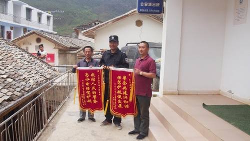 為感謝水洛河鄉派出所全力為我局工程施工保駕護航,實現轄區社會治安穩定,5月10日,受項目部委派,新藏電站工程項目部安全副經理吳畏和固滴電站工程項目部安全副經理袁友軍到水洛河鄉派出所送上錦旗。“警企共建沐和諧、保駕護航促發展”,“感謝人民好警察、為水電保駕護航”,短短的幾句話,道出了警民一家親,平安和諧需要大家的攜手努力。