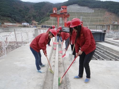 當(dāng)日上午,全體職工戴上安全帽,拿著掃帚,來到大壩壩頂清運(yùn)垃圾、清理廢舊材料并對(duì)現(xiàn)場(chǎng)的各種安全警示牌進(jìn)行梳理,按照規(guī)范配置齊全,對(duì)需要增設(shè)安全網(wǎng)的地方掛設(shè)安全網(wǎng)。