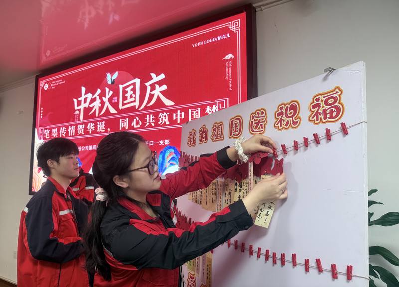 筆墨傳心意,同心賀華誕。在“我為祖國送祝?!杯h節,現場氣氛熱烈而溫馨,每位職工懷著對祖國的深切熱愛,在祝??ㄆ险J真書寫心中的祝福與期盼,并將卡片粘貼在祝福墻上,讓一張張卡片匯聚成紅色的“祝福矩陣”,為祖國獻上最真摯的禮贊。
