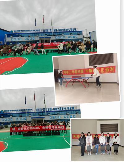 下午,項目部因地制宜開展了體育比賽。亭子口項目突出人員及場地優(yōu)勢,開展了拔河比賽,女職工們雙手緊握繩子,一個隊、一條心,為團隊榮譽奮力拼搏;金堂項目部女職工們開展了乒乓球比賽,大家使出渾身解數,你追我趕,不甘示弱,慶祝活動在一片歡聲笑語中結束。