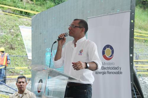 儀式上,厄瓜多爾副總統(tǒng)JORGE GLAS作重要講話,并高度贊揚(yáng)中方TP項(xiàng)目建設(shè)所取得的成績,感謝中方TP項(xiàng)目建設(shè)者的辛勤努力。厄瓜多爾TP項(xiàng)目負(fù)責(zé)人介紹了電站建設(shè)情況和工程進(jìn)度,通報(bào)目前已符合截流條件,請(qǐng)求厄瓜多爾副總統(tǒng)下達(dá)截流指令。隨著副總統(tǒng)一聲令下,禮炮鳴響,禮花綻放,五顏六色的熱氣球緩緩升空,現(xiàn)場上的數(shù)輛重型自卸車、挖掘機(jī)、推土機(jī)、裝載機(jī)在截流龍口開始緊張工作。